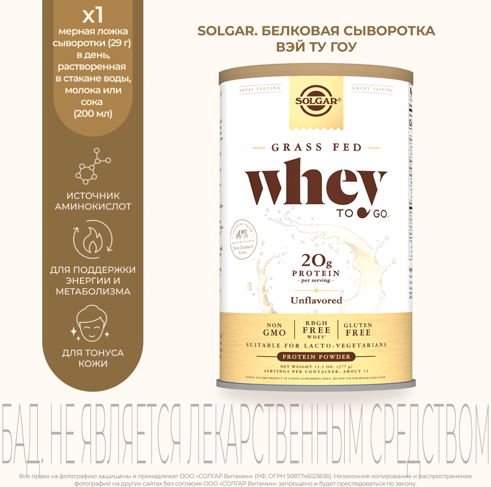 • Содержит 20 г белка в одной порции из молока коров травяного откорма (Новая Зеландия)