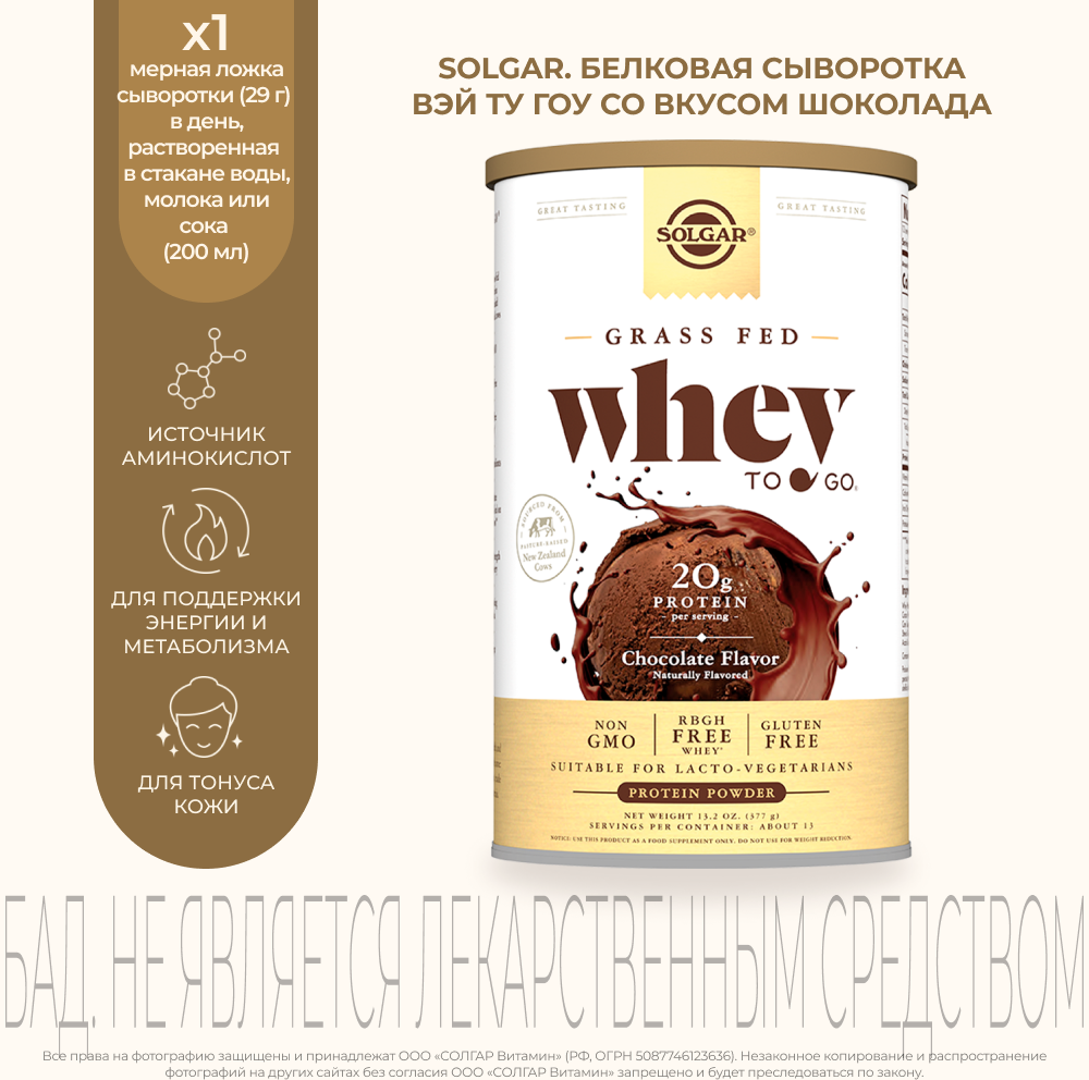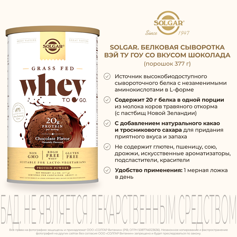 Белковую сыворотку Вэй ту гоу со вкусом шоколада можно использовать для приготовления белкового коктейля и любимой выпечки с целью повышения их питательной ценности и пользы. В состав продукта входит какао – натуральный ароматизатор богатый микроэлементами и биофлавоноидами.