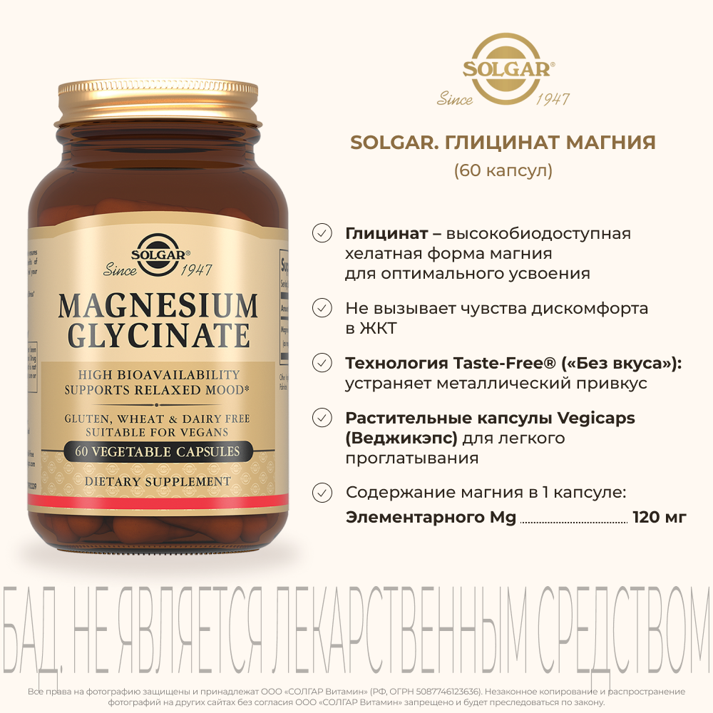 • Содержит 120 мг элементарного магния в одной капсуле в высокобиодоступной хелатной форме