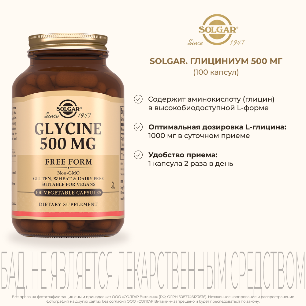 • Содержит высокобиодоступную L-форму аминокислоты глицина
