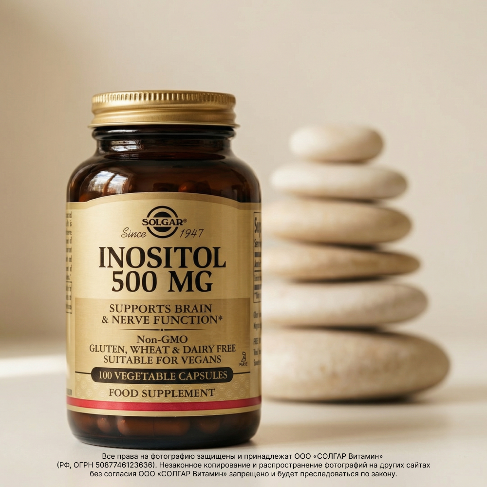 Инозитол способствует нормализации менструального цикла и функции яичников, а также повышает чувствительность клеток к инсулину для поддержки здорового обмена веществ. Кроме того, инозитол участвует в работе нервной системы, помогая поддерживать эмоциональное равновесие и устойчивость к стрессу.