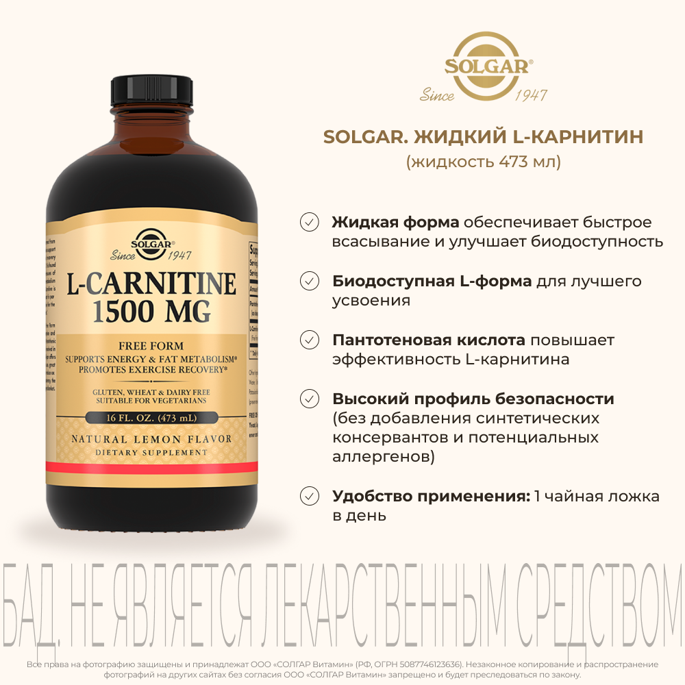 L-карнитин способствует транспорту жирных кислот в клетки, поддерживая энергетический обмен в организме. Помогает повысить работоспособность и ускорить восстановление после физической активности. Участвует в метаболических процессах, способствуя поддержанию оптимального веса, особенно в сочетании с активным образом жизни.