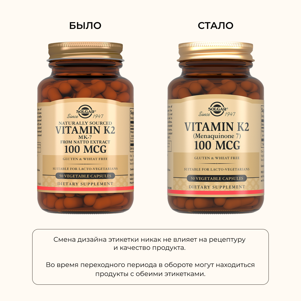 • Витамин К2 (менахинон 7) — 100 мкг,
